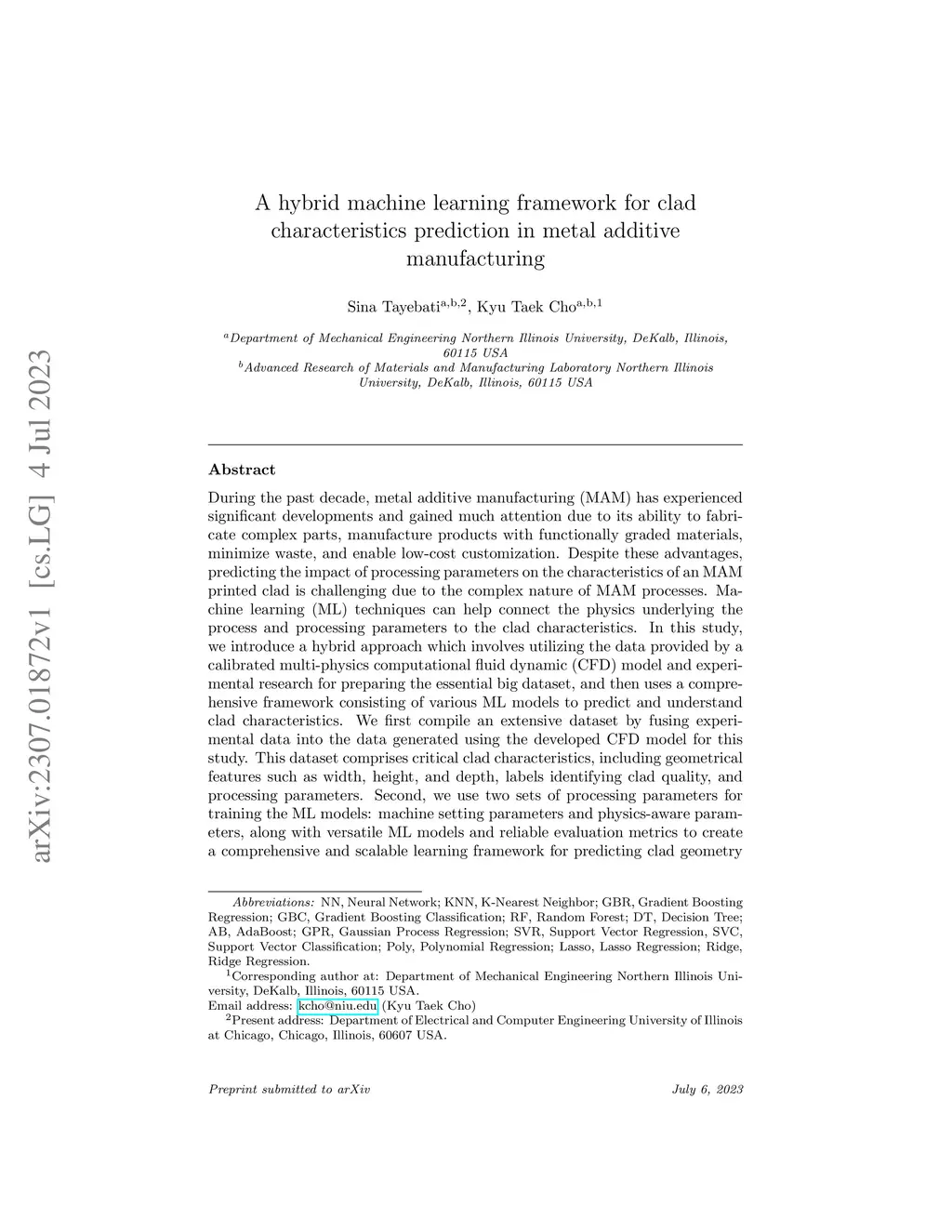 A hybrid machine learning framework for clad characteristics prediction