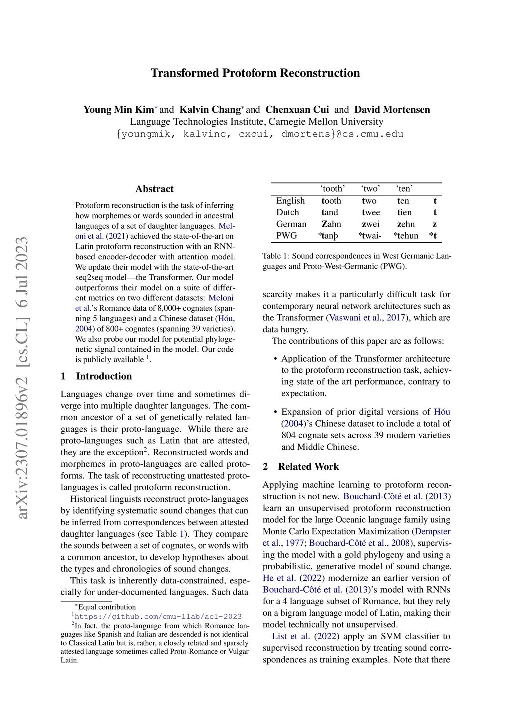 Transformed Protoform Reconstruction