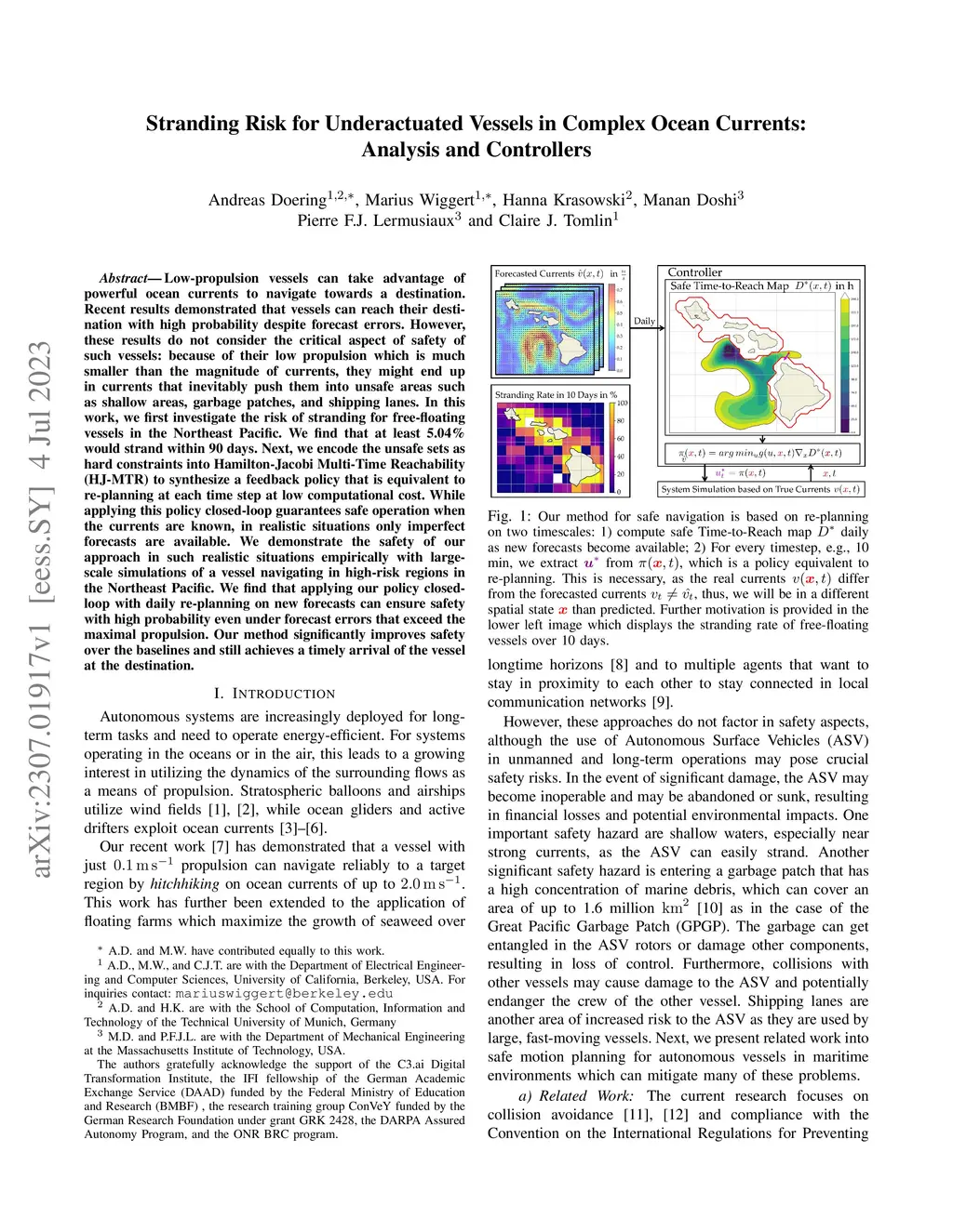 Stranding Risk for Underactuated Vessels in Complex Ocean Currents: