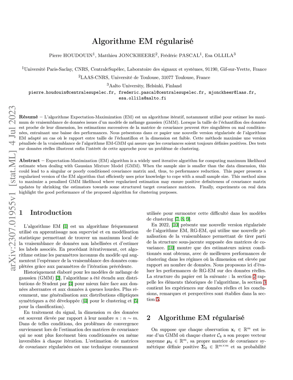 Expectation-Maximization (EM) algorithm is a widely used iterative algorithm for computing maximum likelihood estimate when dealing with Gaussian Mixture Model (GMM). When the sample size is smaller than the data dimension, this could lead to a singular or poorly conditioned covariance matrix and, thus, to performance reduction. This paper presents a regularized version of the EM algorithm that efficiently uses prior knowledge to cope with a small sample size. This method aims to maximize a penalized GMM likelihood where regularized estimation may ensure positive definiteness of covariance matrix updates by shrinking the estimators towards some structured target covariance matrices. Finally, experiments on real data highlight the good performance of the proposed algorithm for clustering purposes