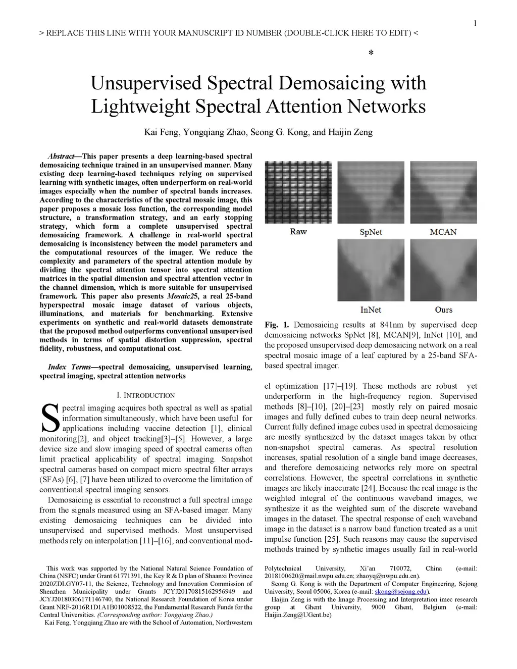 Unsupervised Spectral Demosaicing with Lightweight Spectral Attention