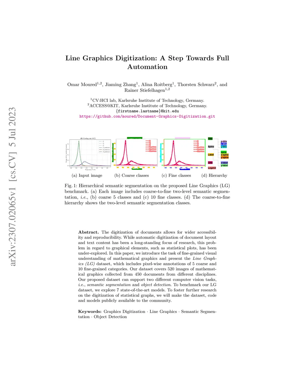 The digitization of documents allows for wider accessibility and reproducibility. While automatic digitization of document layout and text content has been a long-standing focus of research, this problem in regard to graphical elements, such as statistical plots, has been under-explored. In this paper, we introduce the task of fine-grained visual understanding of mathematical graphics and present the Line Graphics (LG) dataset, which includes pixel-wise annotations of 5 coarse and 10 fine-grained categories. Our dataset covers 520 images of mathematical graphics collected from 450 documents from different disciplines. Our proposed dataset can support two different computer vision tasks, i.e., semantic segmentation and object detection. To benchmark our LG dataset, we explore 7 state-of-the-art models. To foster further research on the digitization of statistical graphs, we will make the dataset, code, and models publicly available to the community.
