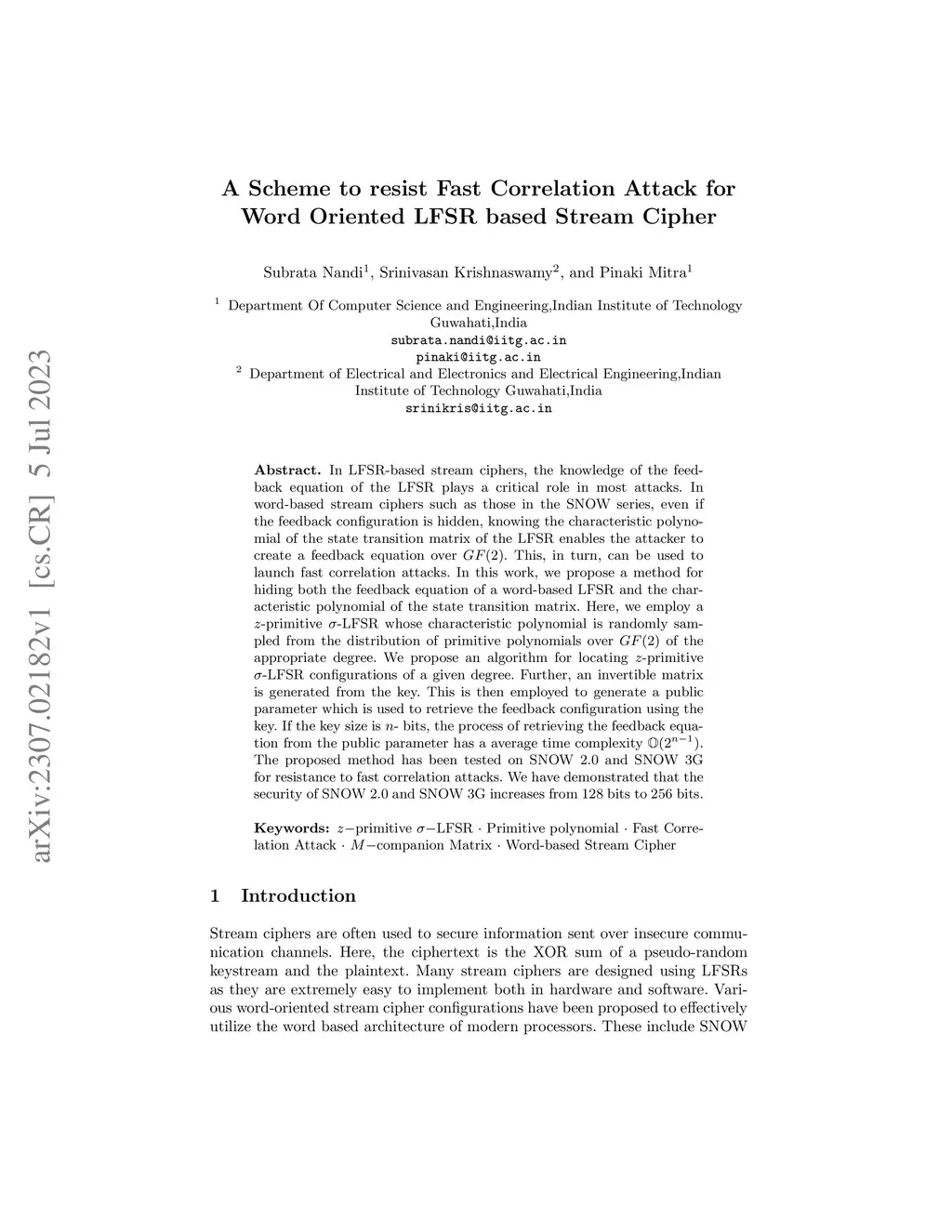 In LFSR-based stream ciphers, the knowledge of the feedback equation of the LFSR plays a critical role in most attacks. In word-based stream ciphers such as those in the SNOW series, even if the feedback configuration is hidden, knowing the characteristic polynomial of the state transition matrix of the LFSR enables the attacker to create a feedback equation over . This, in turn, can be used to launch fast correlation attacks. In this work, we propose a method for hiding both the feedback equation of a word-based LFSR and the characteristic polynomial of the state transition matrix. Here, we employ a -primitive -LFSR whose characteristic polynomial is randomly sampled from the distribution of primitive polynomials over of the appropriate degree. We propose an algorithm for locating -primitive -LFSR configurations of a given degree. Further, an invertible matrix is generated from the key. This is then employed to generate a public parameter which is used to retrieve the feedback configuration using the key. If the key size is - bits, the process of retrieving the feedback equation from the public parameter has a average time complexity . The proposed method has been tested on SNOW 2.0 and SNOW 3G for resistance to fast correlation attacks. We have demonstrated that the security of SNOW 2.0 and SNOW 3G increases from 128 bits to 256 bits.