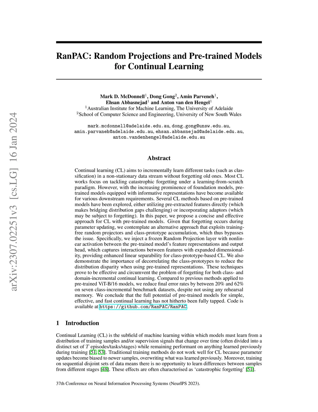 RanPAC: Random Projections and Pre-trained Models for Continual Learning
