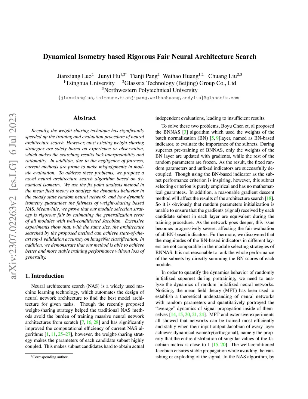 Recently, the weight-sharing technique has significantly speeded up the training and evaluation procedure of neural architecture search. However, most existing weight-sharing strategies are solely based on experience or observation, which makes the searching results lack interpretability and rationality. In addition, due to the negligence of fairness, current methods are prone to make misjudgments in module evaluation. To address these problems, we propose a novel neural architecture search algorithm based on dynamical isometry. We use the fix point analysis method in the mean field theory to analyze the dynamics behavior in the steady state random neural network, and how dynamic isometry guarantees the fairness of weight-sharing based NAS. Meanwhile, we prove that our module selection strategy is rigorous fair by estimating the generalization error of all modules with well-conditioned Jacobian. Extensive experiments show that, with the same size, the architecture searched by the proposed method can achieve state-of-the-art top-1 validation accuracy on ImageNet classification. In addition, we demonstrate that our method is able to achieve better and more stable training performance without loss of generality.