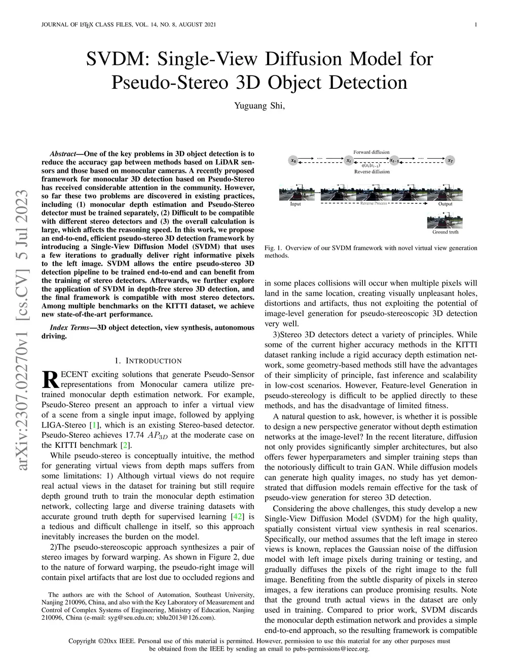 SVDM: Single-View Diffusion Model for Pseudo-Stereo 3D Object Detection