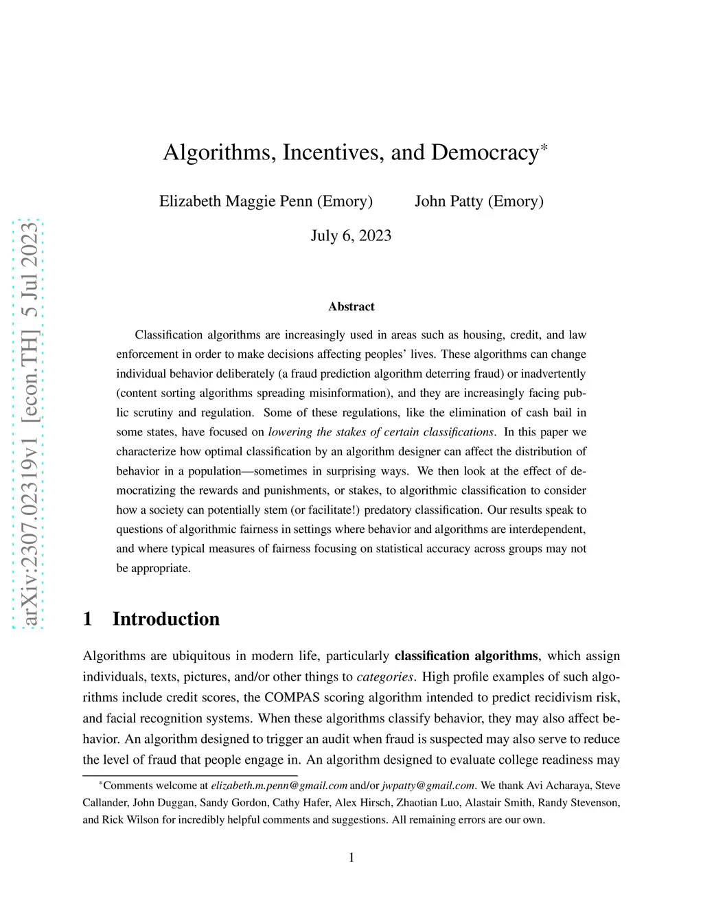 Algorithms, Incentives, and Democracy