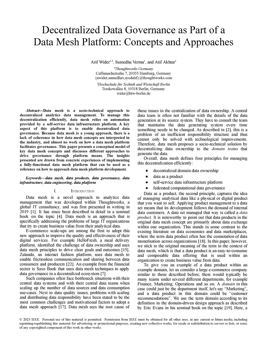 Decentralized Data Governance as Part of a Data Mesh Platform: Concepts