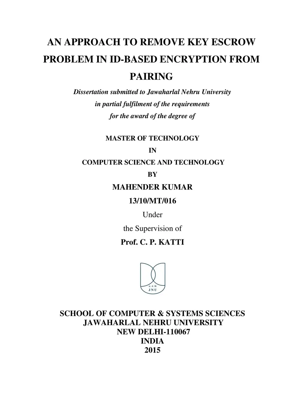 An Approach to Remove Key Escrow Problem in ID-Based Encryption From