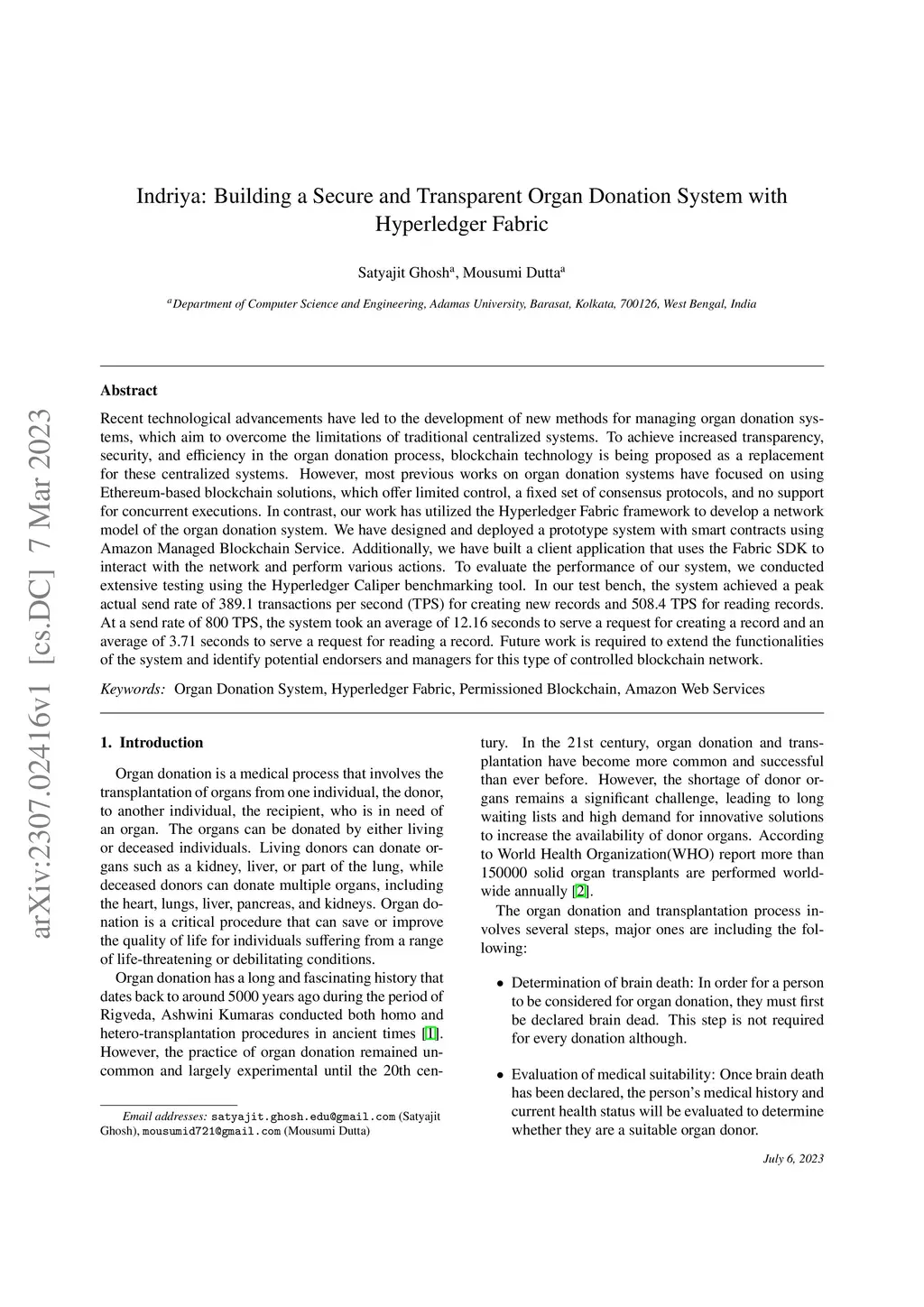 Indriya: Building a Secure and Transparent Organ Donation System with