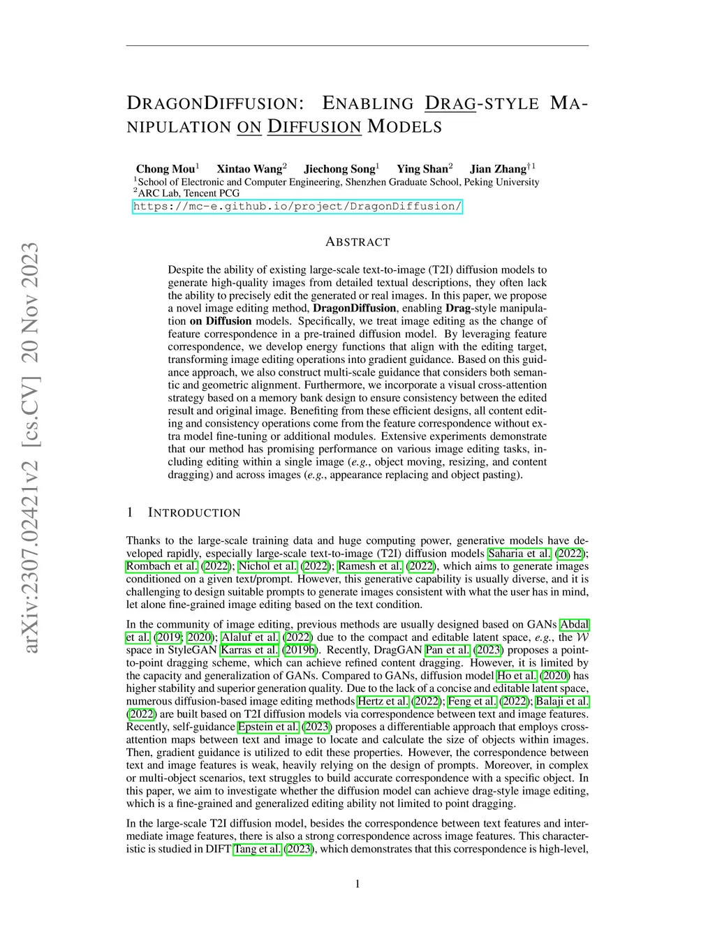 DragonDiffusion: Enabling Drag-style Manipulation on Diffusion Models