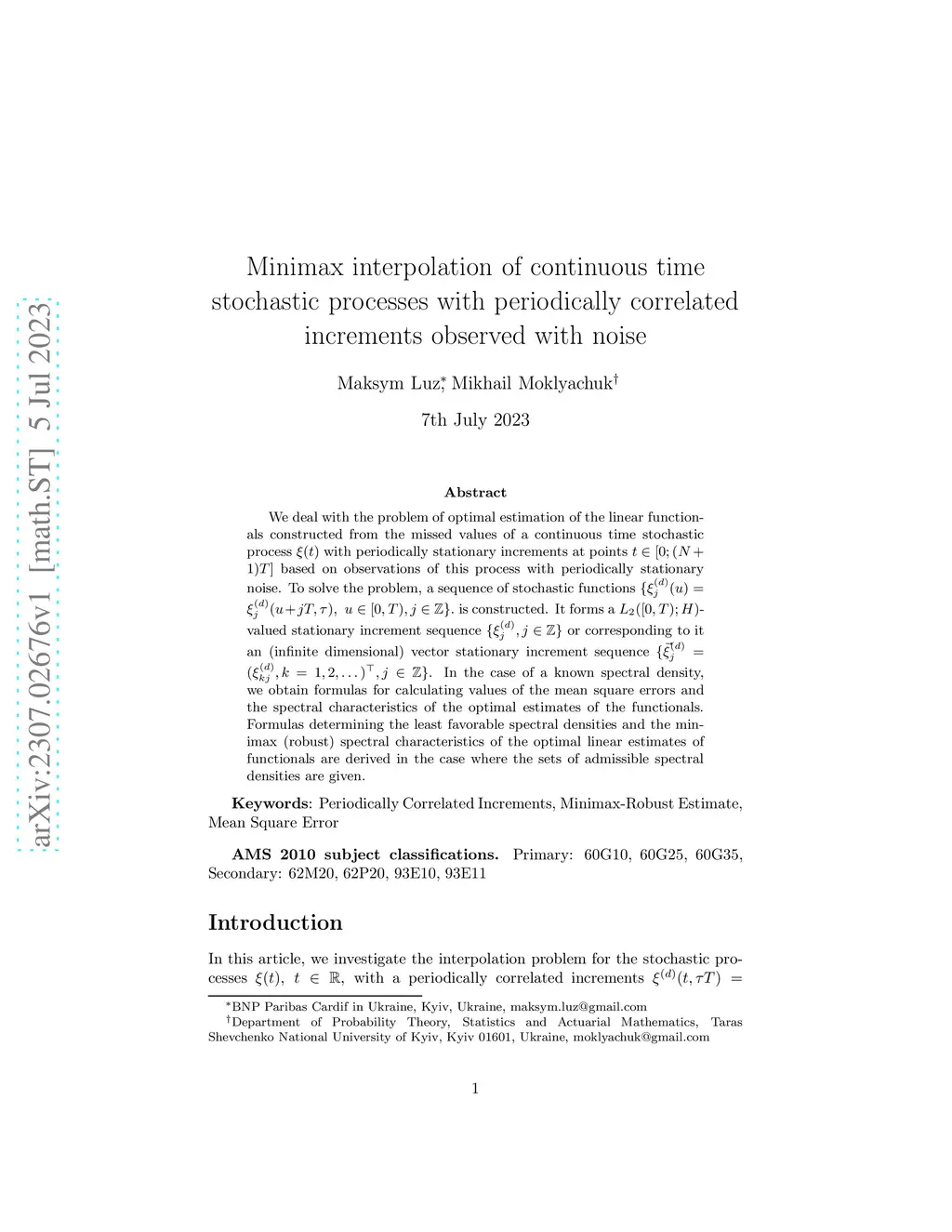 Minimax interpolation of continuous time stochastic processes with