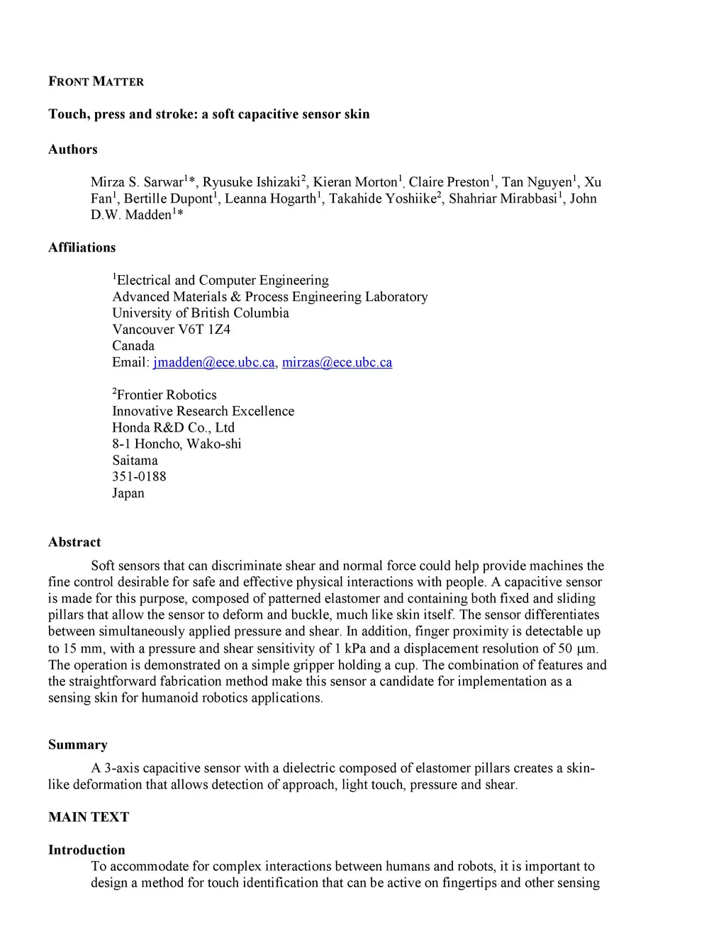 Touch, press and stroke: a soft capacitive sensor skin