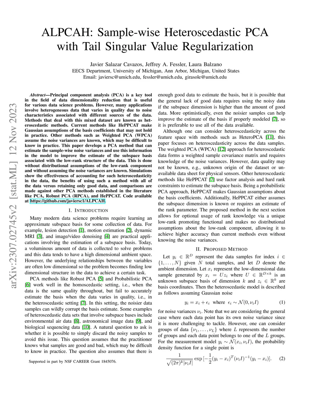 ALPCAH: Sample-wise Heteroscedastic PCA with Tail Singular Value