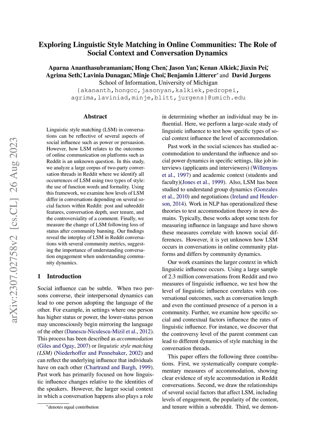 Exploring Linguistic Style Matching in Online Communities: The Role of