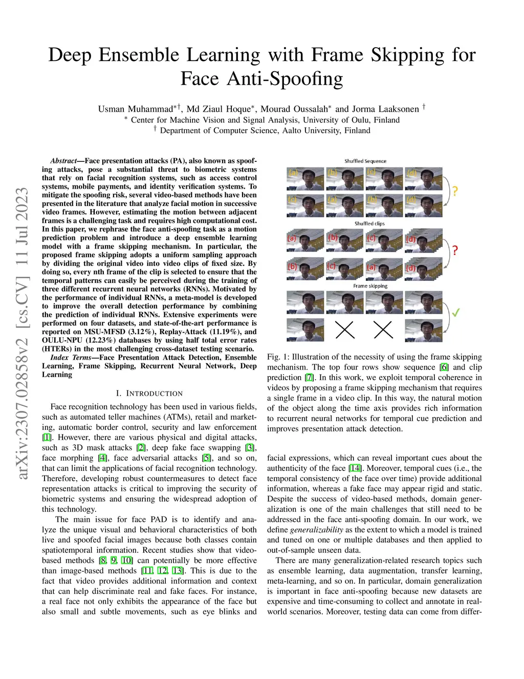 Deep Ensemble Learning with Frame Skipping for Face Anti-Spoofing