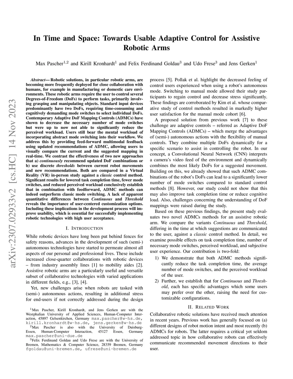 In Time and Space: Towards Usable Adaptive Control for Assistive Robotic