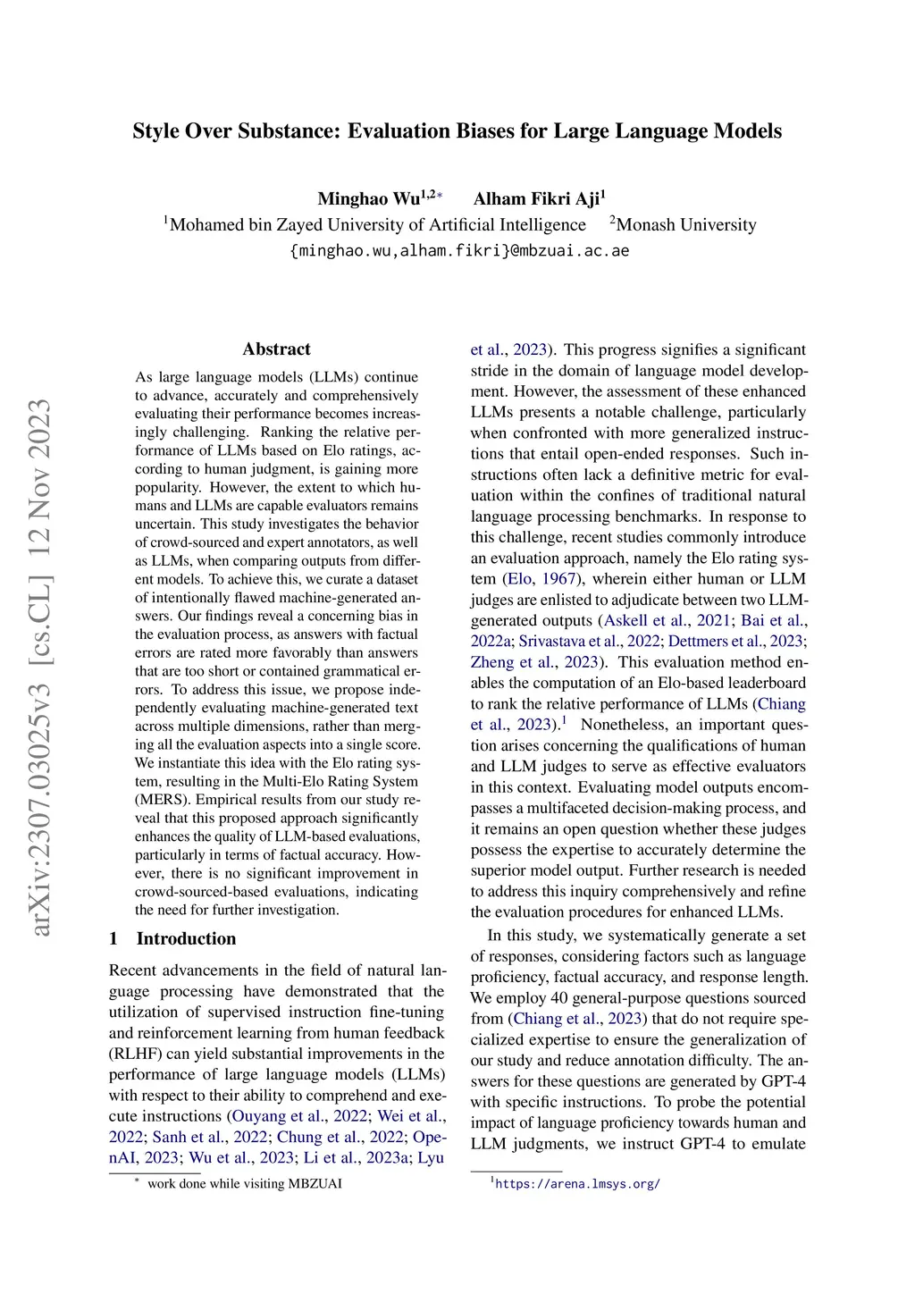 As large language models (LLMs) continue to advance, accurately and comprehensively evaluating their performance becomes increasingly challenging. Ranking the relative performance of LLMs based on Elo ratings, according to human judgment, is gaining more popularity. However, the extent to which humans and LLMs are capable evaluators remains uncertain. This study investigates the behavior of crowd-sourced and expert annotators, as well as LLMs, when comparing outputs from different models. To achieve this, we curate a dataset of intentionally flawed machine-generated answers. Our findings reveal a concerning bias in the evaluation process, as answers with factual errors are rated more favorably than answers that are too short or contained grammatical errors. To address this issue, we propose independently evaluating machine-generated text across multiple dimensions, rather than merging all the evaluation aspects into a single score. We instantiate this idea with the Elo rating system, resulting in the Multi-Elo Rating System (MERS). Empirical results from our study reveal that this proposed approach significantly enhances the quality of LLM-based evaluations, particularly in terms of factual accuracy. However, there is no significant improvement in crowd-sourced-based evaluations, indicating the need for further investigation.
