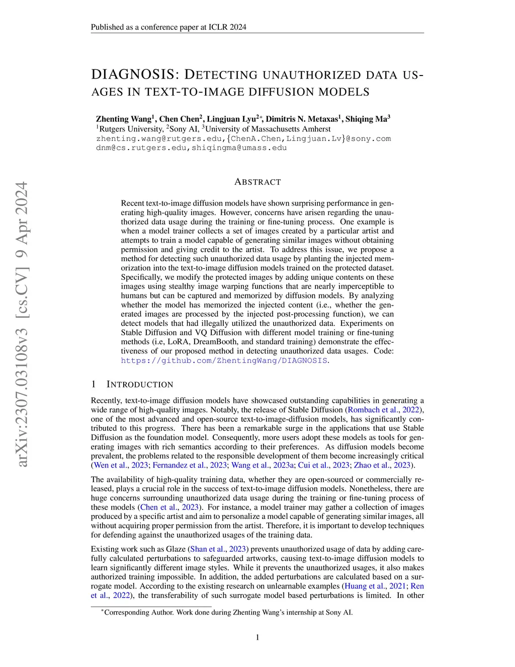 DIAGNOSIS: Detecting Unauthorized Data Usages in Text-to-image Diffusion