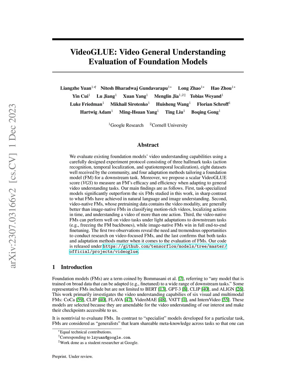 VideoGLUE: Video General Understanding Evaluation of Foundation Models