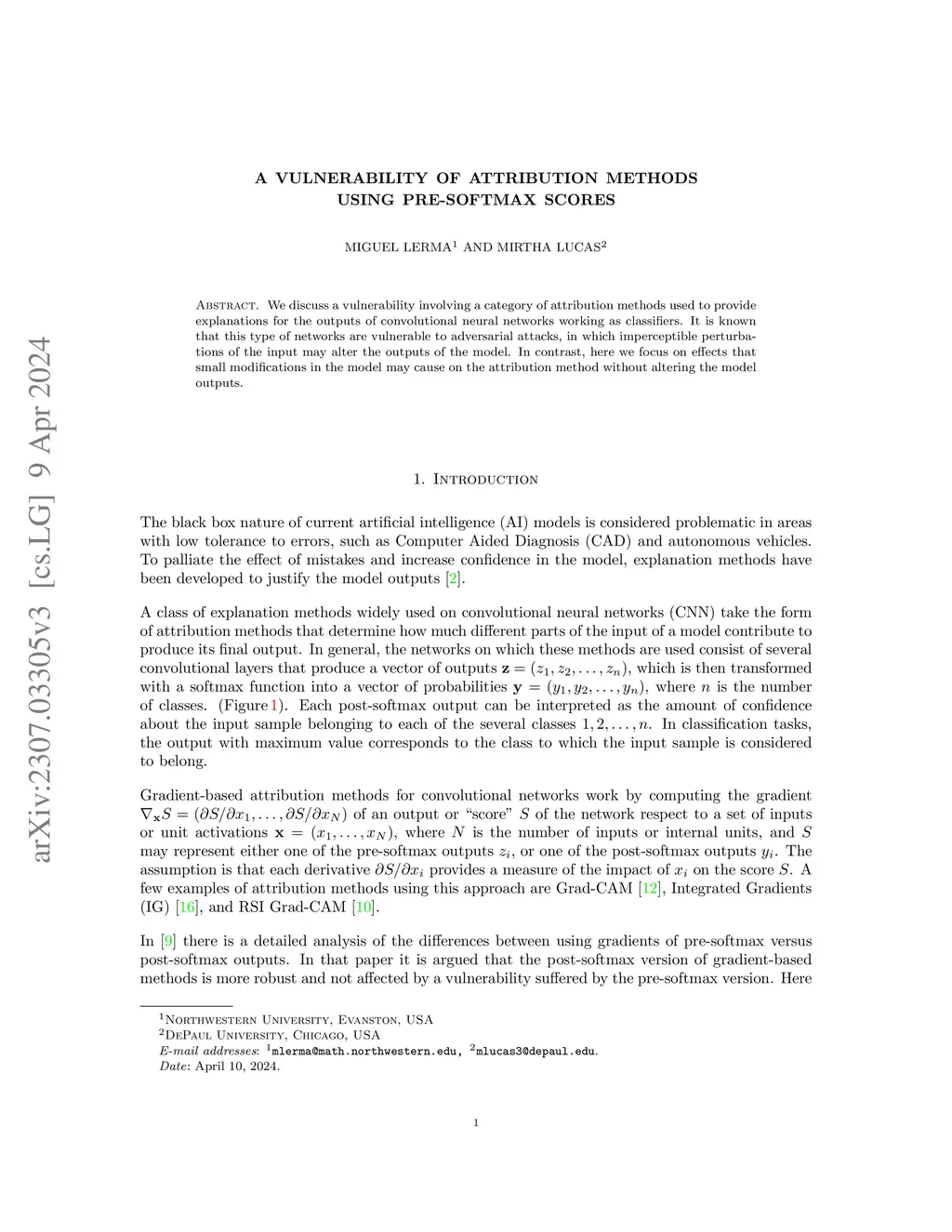 A Vulnerability of Attribution Methods Using Pre-Softmax Scores