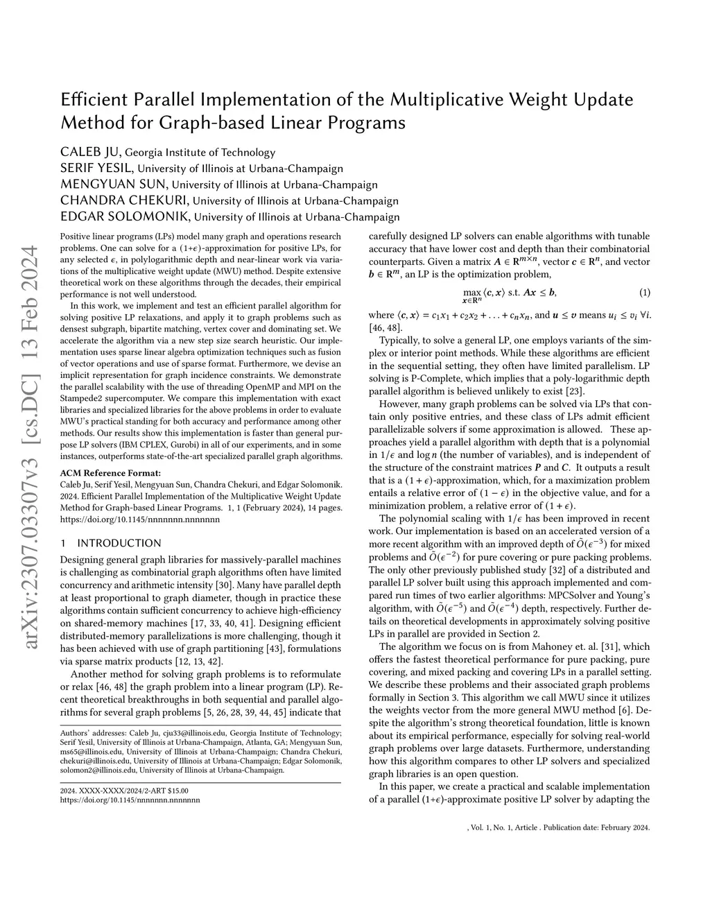 Efficient parallel implementation of the multiplicative weight update