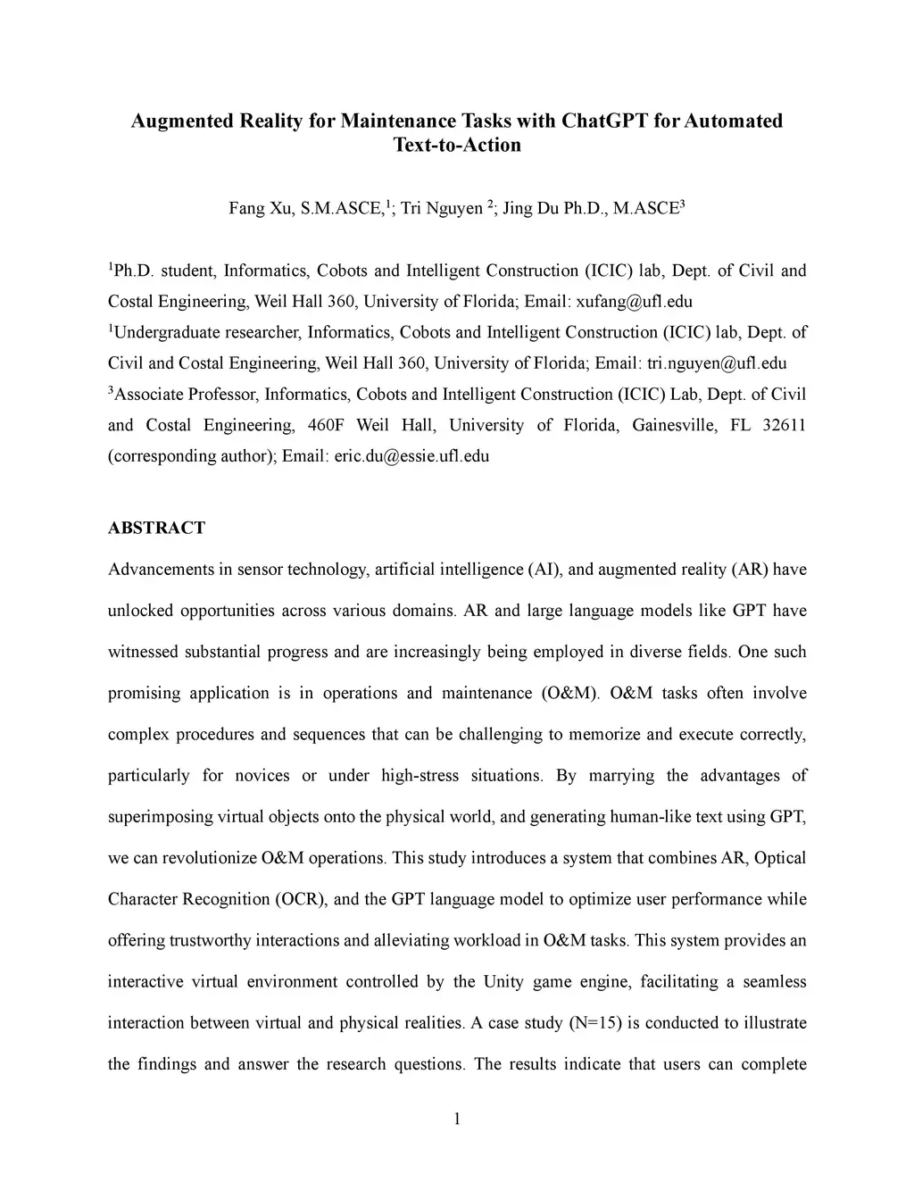 Advancements in sensor technology, artificial intelligence (AI), and augmented reality (AR) have unlocked opportunities across various domains. AR and large language models like GPT have witnessed substantial progress and are increasingly being employed in diverse fields. One such promising application is in operations and maintenance (O&M). O&M tasks often involve complex procedures and sequences that can be challenging to memorize and execute correctly, particularly for novices or under high-stress situations. By marrying the advantages of superimposing virtual objects onto the physical world, and generating human-like text using GPT, we can revolutionize O&M operations. This study introduces a system that combines AR, Optical Character Recognition (OCR), and the GPT language model to optimize user performance while offering trustworthy interactions and alleviating workload in O&M tasks. This system provides an interactive virtual environment controlled by the Unity game engine, facilitating a seamless interaction between virtual and physical realities. A case study (N=15) is conducted to illustrate the findings and answer the research questions. The results indicate that users can complete similarly challenging tasks in less time using our proposed AR and AI system. Moreover, the collected data also suggests a reduction in cognitive load and an increase in trust when executing the same operations using the AR and AI system.