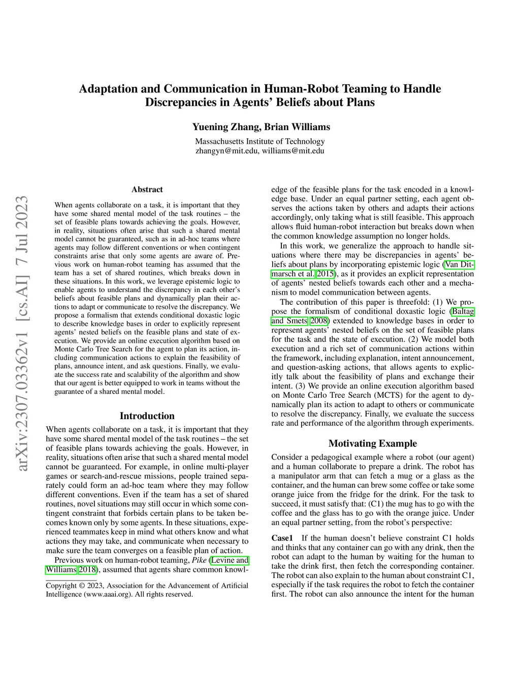 Adaptation and Communication in Human-Robot Teaming to Handle