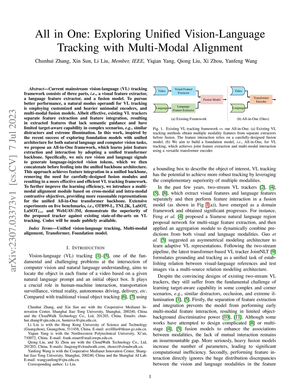 All in One: Exploring Unified Vision-Language Tracking with Multi-Modal Alignment