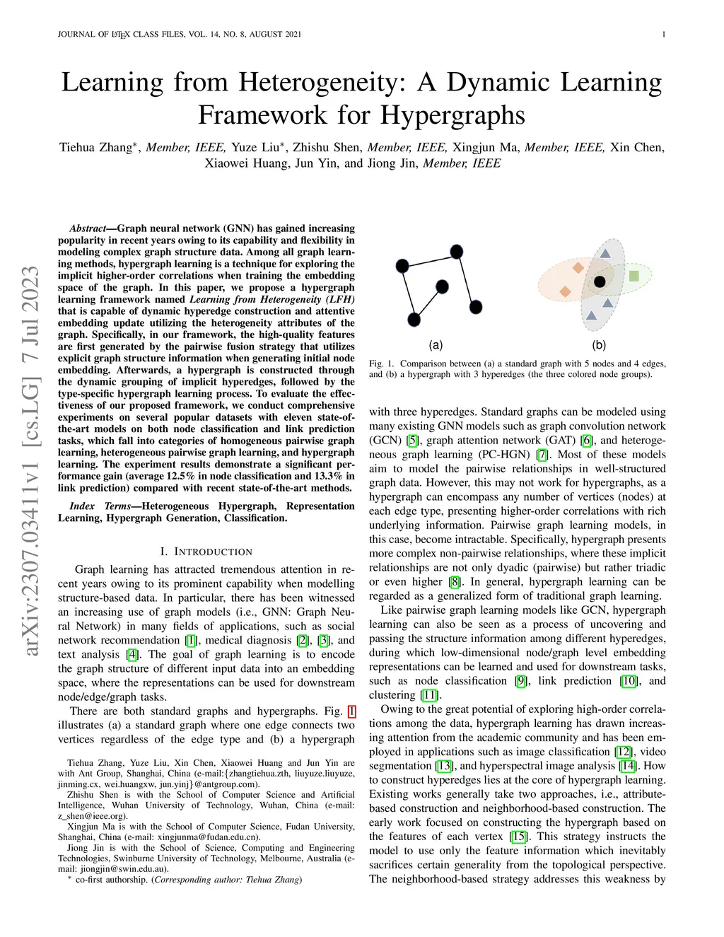 Graph neural network (GNN) has gained increasing popularity in recent years owing to its capability and flexibility in modeling complex graph structure data. Among all graph learning methods, hypergraph learning is a technique for exploring the implicit higher-order correlations when training the embedding space of the graph. In this paper, we propose a hypergraph learning framework named LFH that is capable of dynamic hyperedge construction and attentive embedding update utilizing the heterogeneity attributes of the graph. Specifically, in our framework, the high-quality features are first generated by the pairwise fusion strategy that utilizes explicit graph structure information when generating initial node embedding. Afterwards, a hypergraph is constructed through the dynamic grouping of implicit hyperedges, followed by the type-specific hypergraph learning process. To evaluate the effectiveness of our proposed framework, we conduct comprehensive experiments on several popular datasets with eleven state-of-the-art models on both node classification and link prediction tasks, which fall into categories of homogeneous pairwise graph learning, heterogeneous pairwise graph learning, and hypergraph learning. The experiment results demonstrate a significant performance gain (average 12.5% in node classification and 13.3% in link prediction) compared with recent state-of-the-art methods.