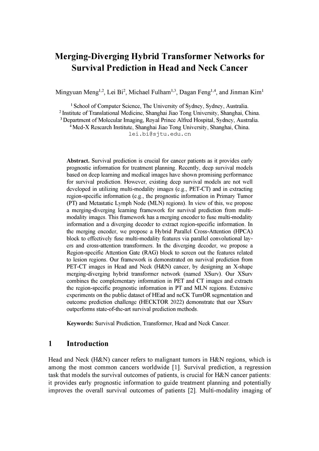 Merging-Diverging Hybrid Transformer Networks for Survival Prediction in