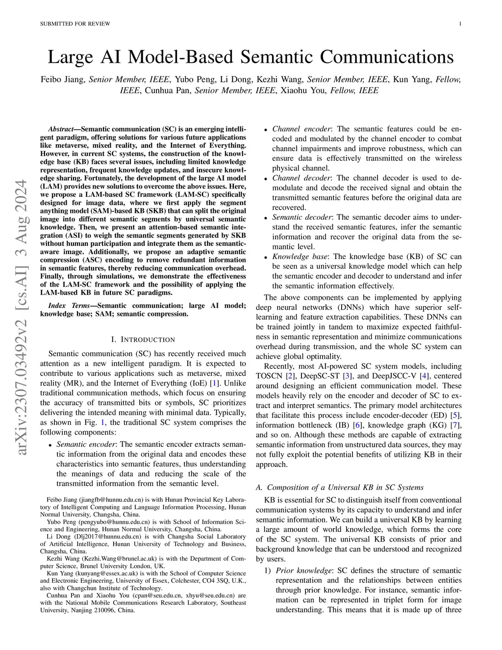 Semantic communication (SC) is an emerging intelligent paradigm, offering solutions for various future applications like metaverse, mixed-reality, and the Internet of everything. However, in current SC systems, the construction of the knowledge base (KB) faces several issues, including limited knowledge representation, frequent knowledge updates, and insecure knowledge sharing. Fortunately, the development of the large AI model provides new solutions to overcome above issues. Here, we propose a large AI model-based SC framework (LAM-SC) specifically designed for image data, where we first design the segment anything model (SAM)-based KB (SKB) that can split the original image into different semantic segments by universal semantic knowledge. Then, we present an attention-based semantic integration (ASI) to weigh the semantic segments generated by SKB without human participation and integrate them as the semantic-aware image. Additionally, we propose an adaptive semantic compression (ASC) encoding to remove redundant information in semantic features, thereby reducing communication overhead. Finally, through simulations, we demonstrate the effectiveness of the LAM-SC framework and the significance of the large AI model-based KB development in future SC paradigms.