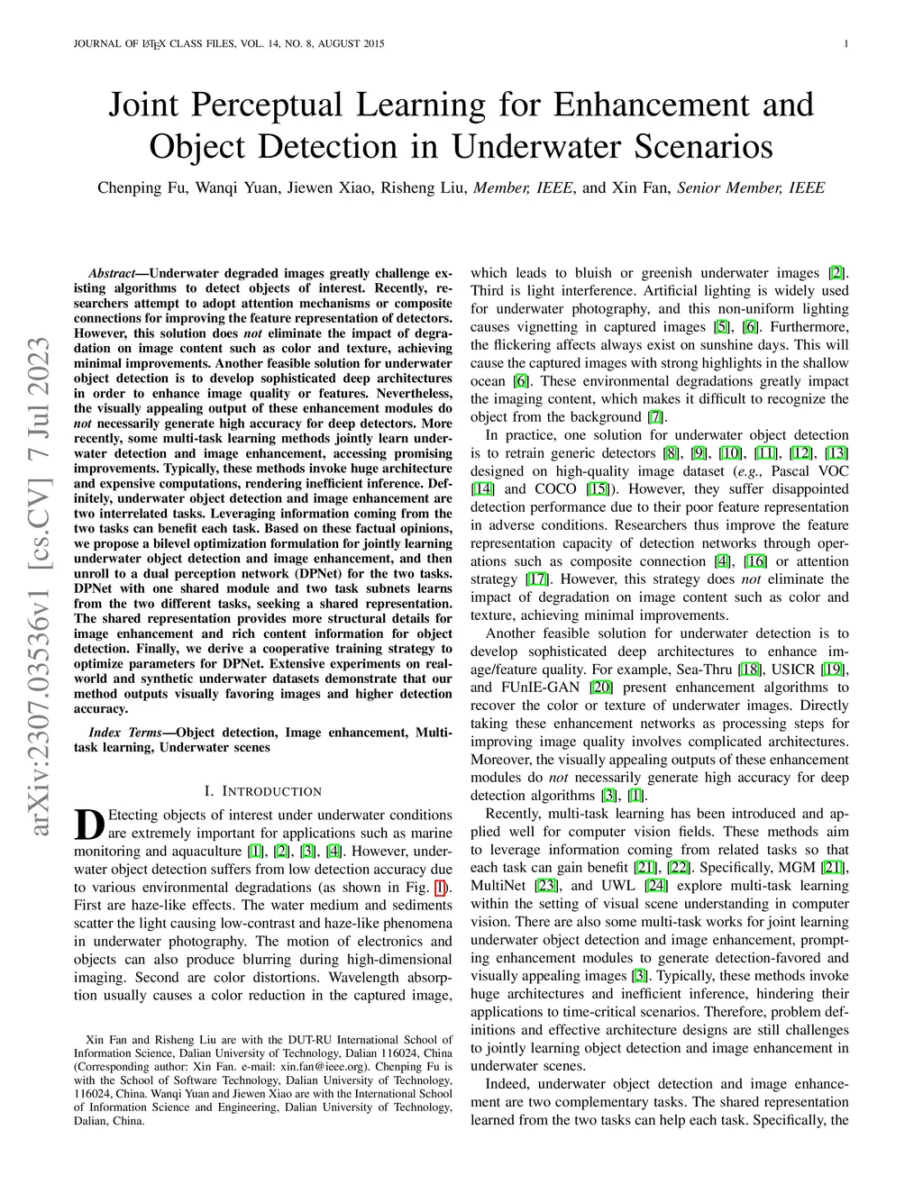 Joint Perceptual Learning for Enhancement and Object Detection in