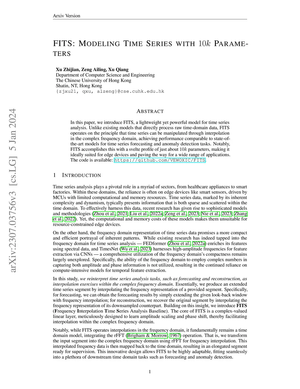 In this paper, we introduce FITS, a lightweight yet powerful model for time series analysis. Unlike existing models that directly process raw time-domain data, FITS operates on the principle that time series can be manipulated through interpolation in the complex frequency domain. By discarding high-frequency components with negligible impact on time series data, FITS achieves performance comparable to state-of-the-art models for time series forecasting and anomaly detection tasks, while having a remarkably compact size of only approximately parameters. Such a lightweight model can be easily trained and deployed in edge devices, creating opportunities for various applications. The code is available in: \url{https://github.com/VEWOXIC/FITS}