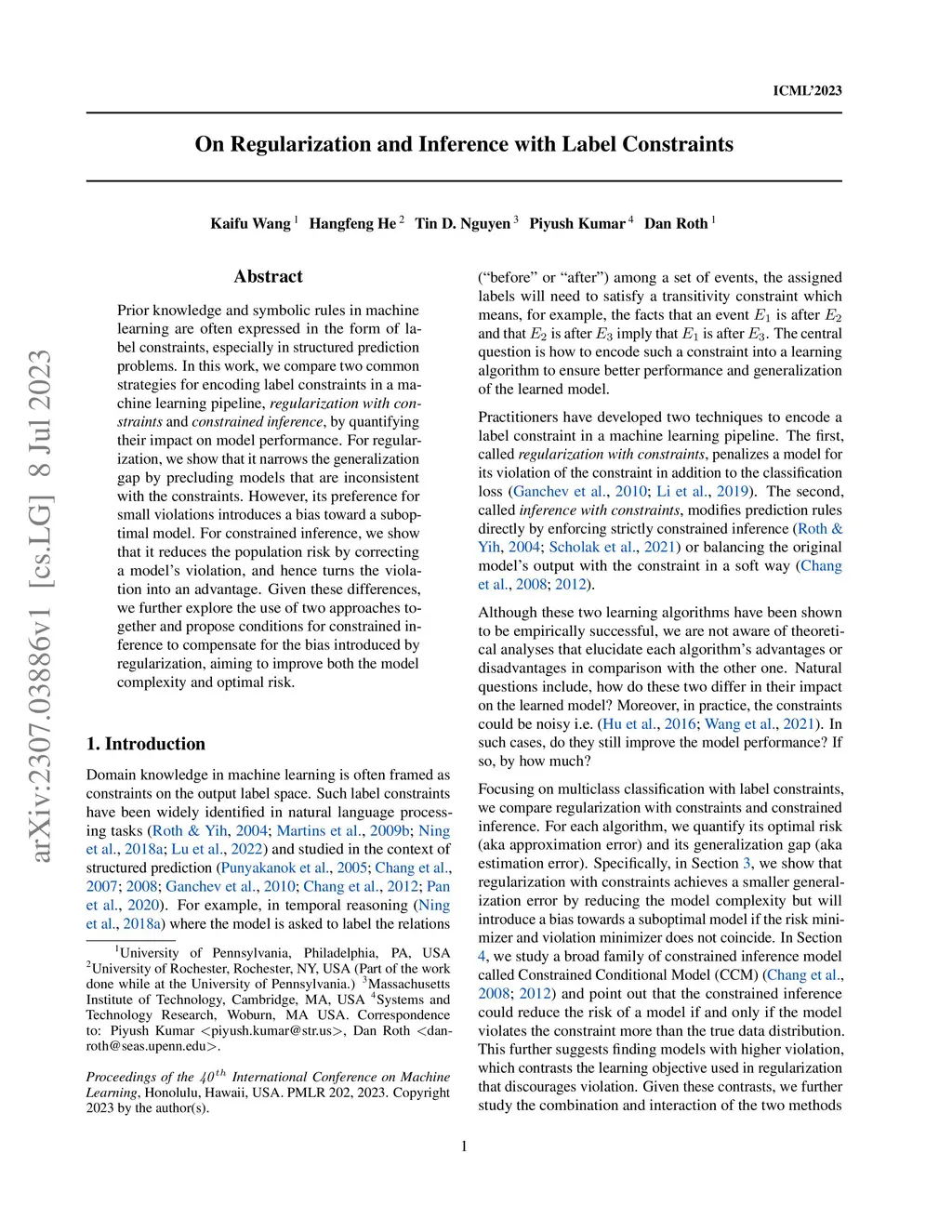 Prior knowledge and symbolic rules in machine learning are often expressed in the form of label constraints, especially in structured prediction problems. In this work, we compare two common strategies for encoding label constraints in a machine learning pipeline, regularization with constraints and constrained inference, by quantifying their impact on model performance. For regularization, we show that it narrows the generalization gap by precluding models that are inconsistent with the constraints. However, its preference for small violations introduces a bias toward a suboptimal model. For constrained inference, we show that it reduces the population risk by correcting a model's violation, and hence turns the violation into an advantage. Given these differences, we further explore the use of two approaches together and propose conditions for constrained inference to compensate for the bias introduced by regularization, aiming to improve both the model complexity and optimal risk.