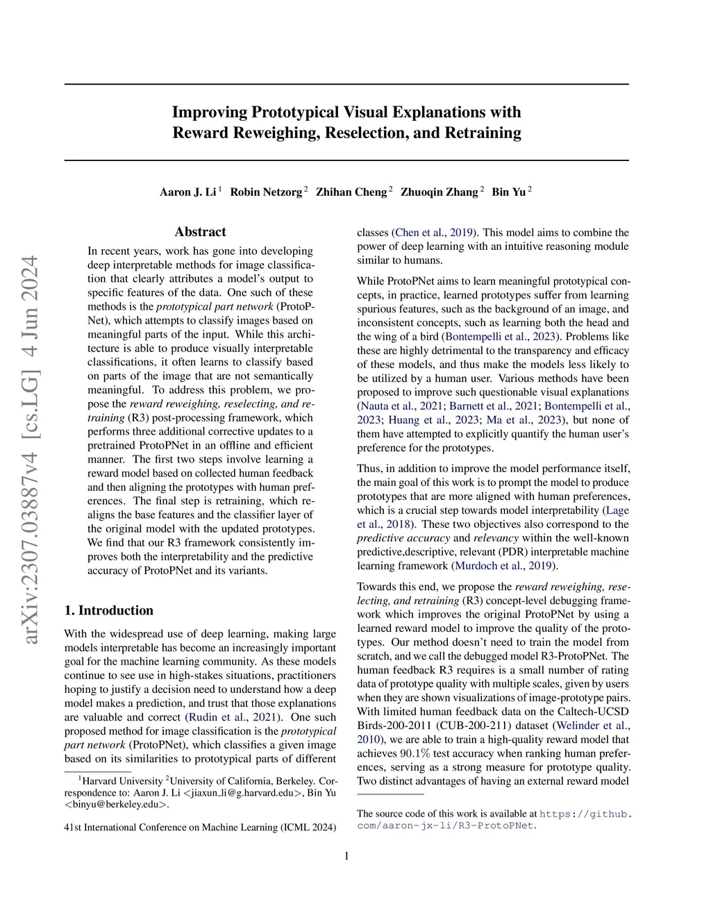 Improving Prototypical Visual Explanations with Reward Reweighing,