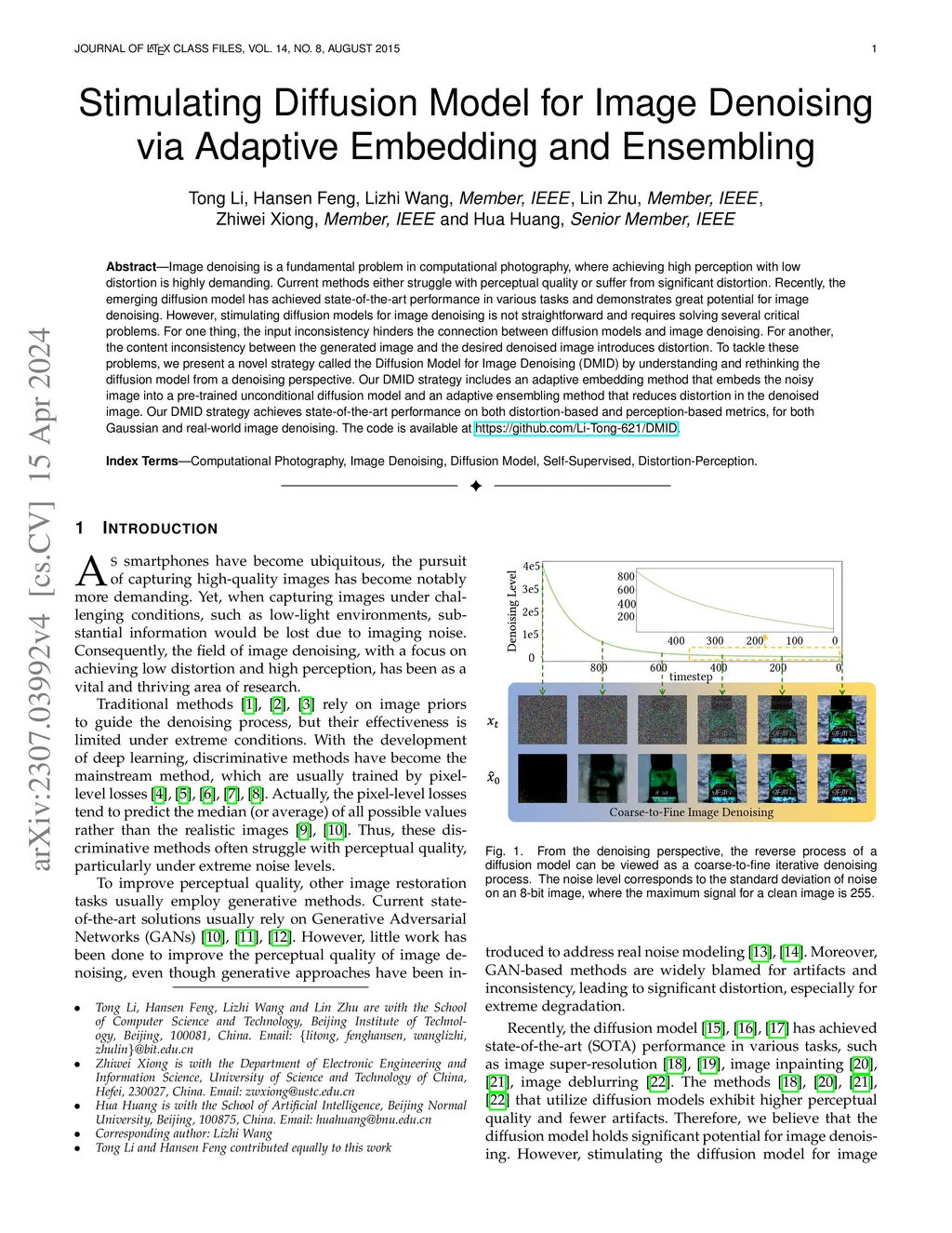 Image denoising is a fundamental problem in computational photography, where achieving high perception with low distortion is highly demanding. Current methods either struggle with perceptual quality or suffer from significant distortion. Recently, the emerging diffusion model has achieved state-of-the-art performance in various tasks and demonstrates great potential for image denoising. However, stimulating diffusion models for image denoising is not straightforward and requires solving several critical problems. For one thing, the input inconsistency hinders the connection between diffusion models and image denoising. For another, the content inconsistency between the generated image and the desired denoised image introduces distortion. To tackle these problems, we present a novel strategy called the Diffusion Model for Image Denoising (DMID) by understanding and rethinking the diffusion model from a denoising perspective. Our DMID strategy includes an adaptive embedding method that embeds the noisy image into a pre-trained unconditional diffusion model and an adaptive ensembling method that reduces distortion in the denoised image. Our DMID strategy achieves state-of-the-art performance on both distortion-based and perception-based metrics, for both Gaussian and real-world image denoising.The code is available at https://github.com/Li-Tong-621/DMID.