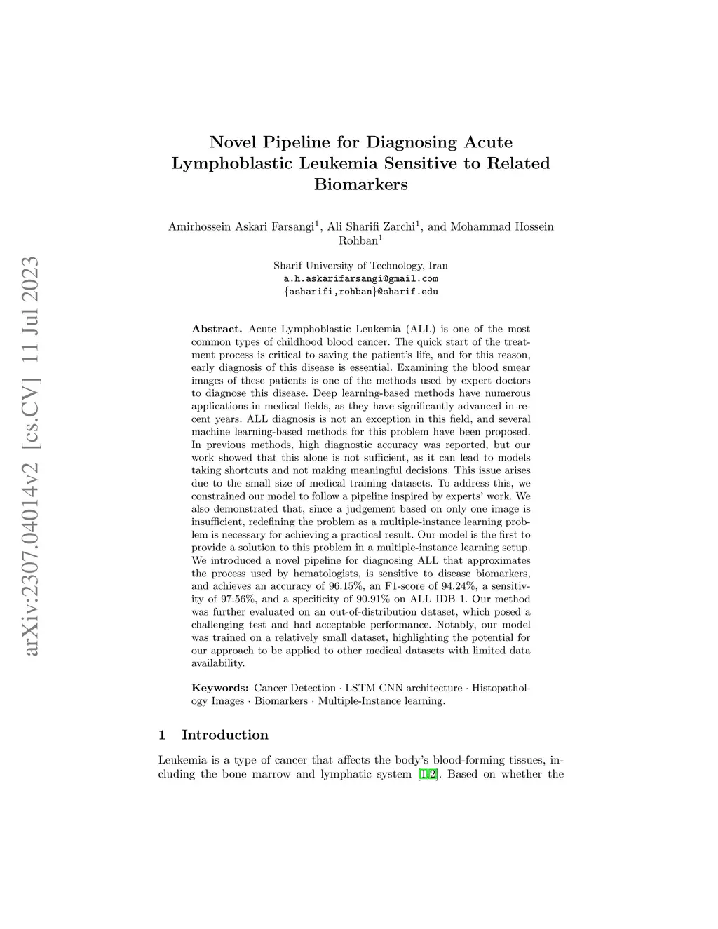 Novel Pipeline for Diagnosing Acute Lymphoblastic Leukemia Sensitive to Related Biomarkers