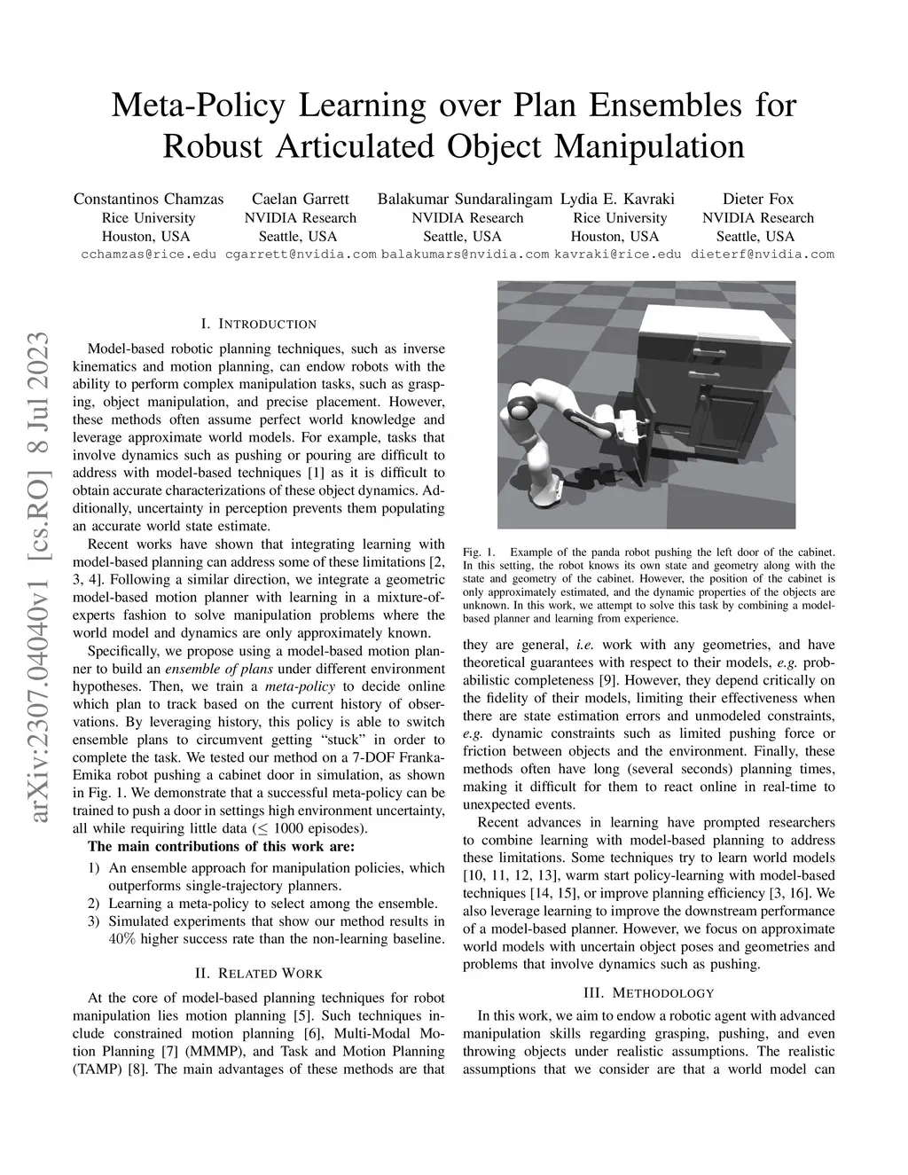Meta-Policy Learning over Plan Ensembles for Robust Articulated Object