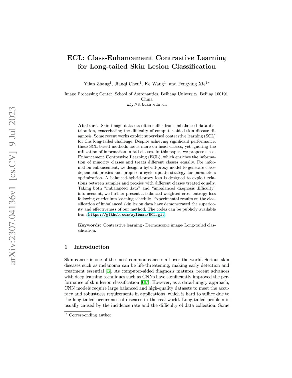 ECL: Class-Enhancement Contrastive Learning for Long-tailed Skin Lesion
