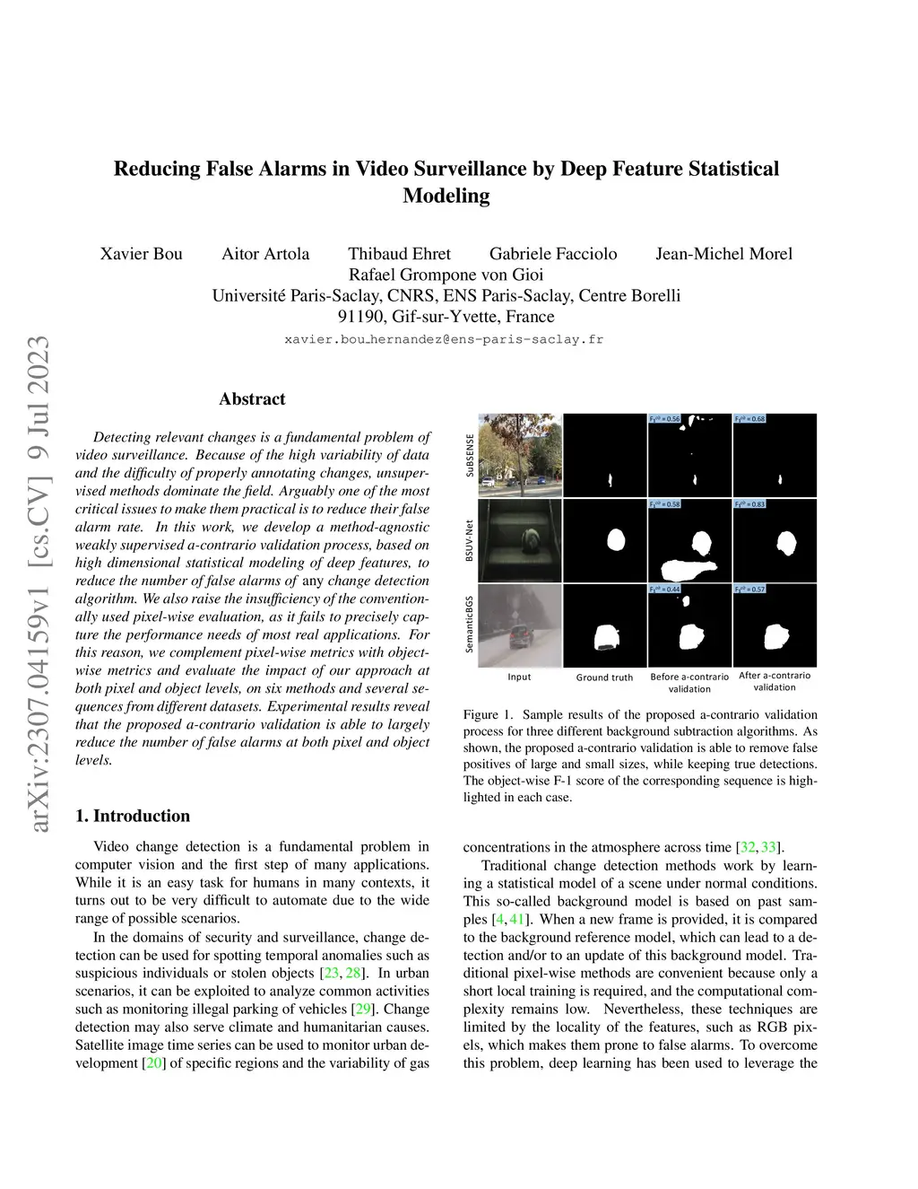 Detecting relevant changes is a fundamental problem of video surveillance. Because of the high variability of data and the difficulty of properly annotating changes, unsupervised methods dominate the field. Arguably one of the most critical issues to make them practical is to reduce their false alarm rate. In this work, we develop a method-agnostic weakly supervised a-contrario validation process, based on high dimensional statistical modeling of deep features, to reduce the number of false alarms of any change detection algorithm. We also raise the insufficiency of the conventionally used pixel-wise evaluation, as it fails to precisely capture the performance needs of most real applications. For this reason, we complement pixel-wise metrics with object-wise metrics and evaluate the impact of our approach at both pixel and object levels, on six methods and several sequences from different datasets. Experimental results reveal that the proposed a-contrario validation is able to largely reduce the number of false alarms at both pixel and object levels.
