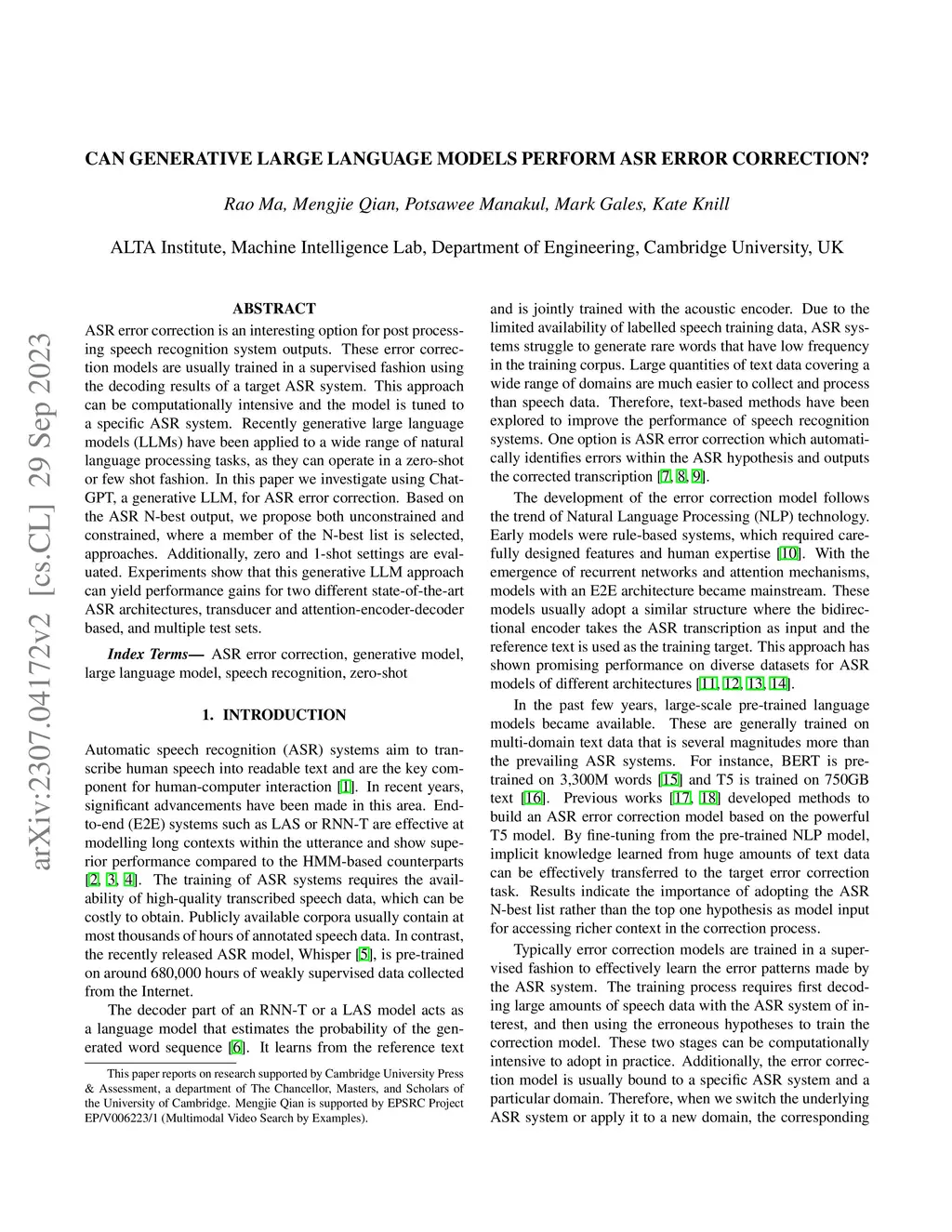 ASR error correction is an interesting option for post processing speech recognition system outputs. These error correction models are usually trained in a supervised fashion using the decoding results of a target ASR system. This approach can be computationally intensive and the model is tuned to a specific ASR system. Recently generative large language models (LLMs) have been applied to a wide range of natural language processing tasks, as they can operate in a zero-shot or few shot fashion. In this paper we investigate using ChatGPT, a generative LLM, for ASR error correction. Based on the ASR N-best output, we propose both unconstrained and constrained, where a member of the N-best list is selected, approaches. Additionally, zero and 1-shot settings are evaluated. Experiments show that this generative LLM approach can yield performance gains for two different state-of-the-art ASR architectures, transducer and attention-encoder-decoder based, and multiple test sets.