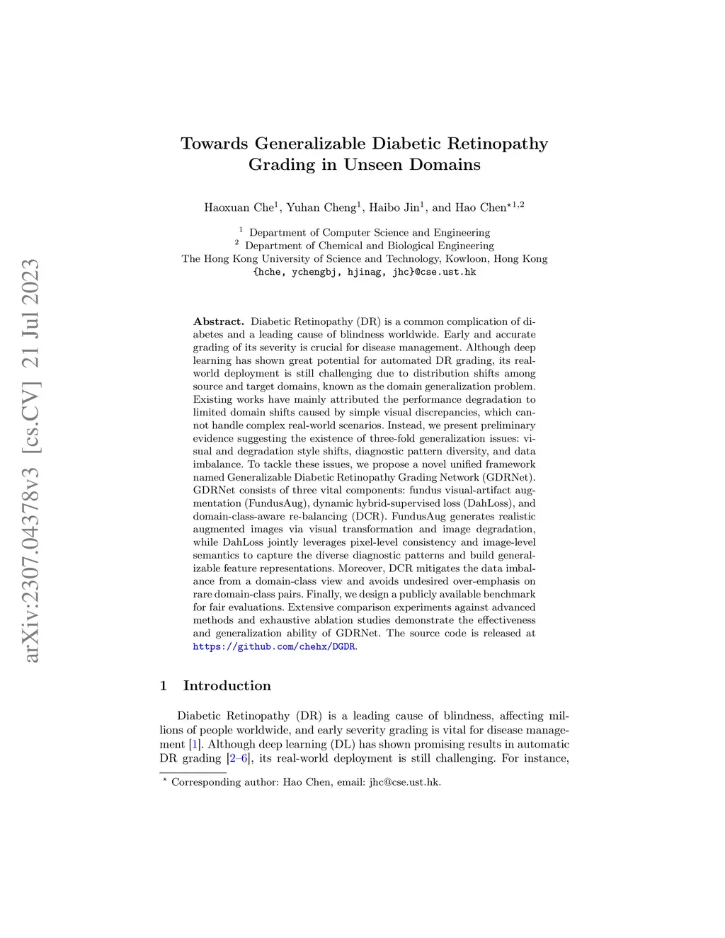 Diabetic Retinopathy (DR) is a common complication of diabetes and a leading cause of blindness worldwide. Early and accurate grading of its severity is crucial for disease management. Although deep learning has shown great potential for automated DR grading, its real-world deployment is still challenging due to distribution shifts among source and target domains, known as the domain generalization problem. Existing works have mainly attributed the performance degradation to limited domain shifts caused by simple visual discrepancies, which cannot handle complex real-world scenarios. Instead, we present preliminary evidence suggesting the existence of three-fold generalization issues: visual and degradation style shifts, diagnostic pattern diversity, and data imbalance. To tackle these issues, we propose a novel unified framework named Generalizable Diabetic Retinopathy Grading Network (GDRNet). GDRNet consists of three vital components: fundus visual-artifact augmentation (FundusAug), dynamic hybrid-supervised loss (DahLoss), and domain-class-aware re-balancing (DCR). FundusAug generates realistic augmented images via visual transformation and image degradation, while DahLoss jointly leverages pixel-level consistency and image-level semantics to capture the diverse diagnostic patterns and build generalizable feature representations. Moreover, DCR mitigates the data imbalance from a domain-class view and avoids undesired over-emphasis on rare domain-class pairs. Finally, we design a publicly available benchmark for fair evaluations. Extensive comparison experiments against advanced methods and exhaustive ablation studies demonstrate the effectiveness and generalization ability of GDRNet.