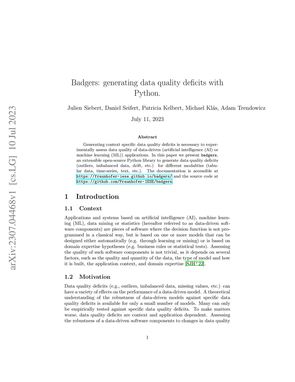 Generating context specific data quality deficits is necessary to experimentally assess data quality of data-driven (artificial intelligence (AI) or machine learning (ML)) applications. In this paper we present badgers, an extensible open-source Python library to generate data quality deficits (outliers, imbalanced data, drift, etc.) for different modalities (tabular data, time-series, text, etc.). The documentation is accessible at https://fraunhofer-iese.github.io/badgers/ and the source code at https://github.com/Fraunhofer-IESE/badgers