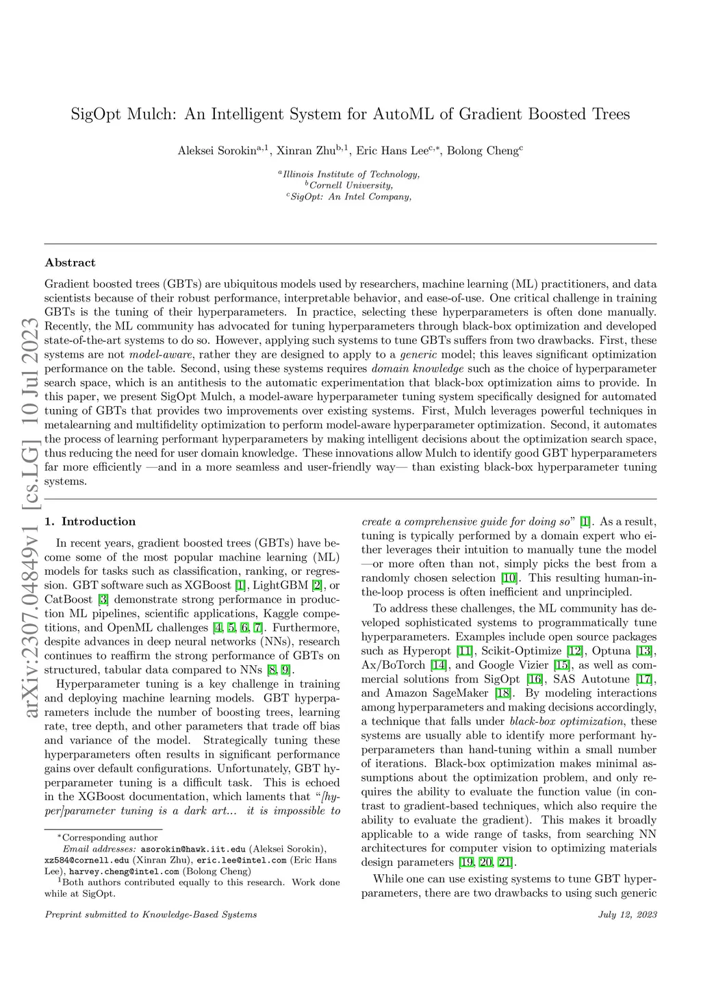 SigOpt Mulch: An Intelligent System for AutoML of Gradient Boosted Trees