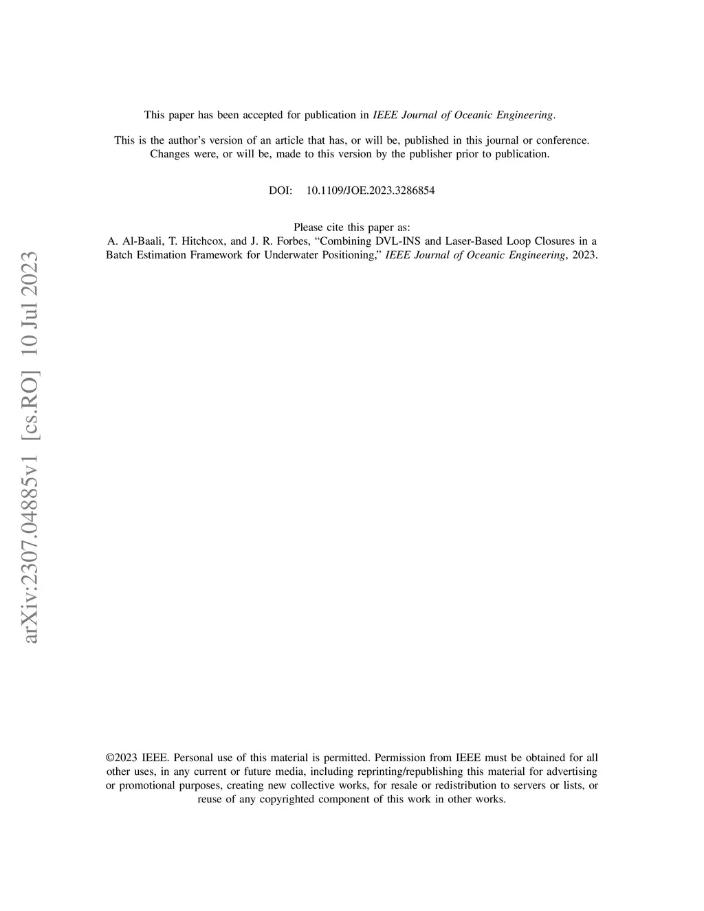Combining DVL-INS and Laser-Based Loop Closures in a Batch Estimation