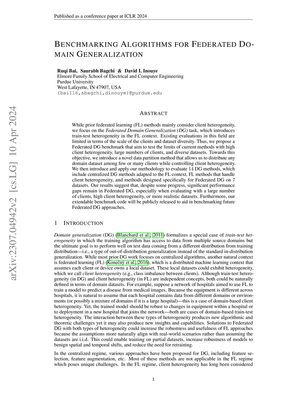 Benchmarking Algorithms for Federated Domain Generalization