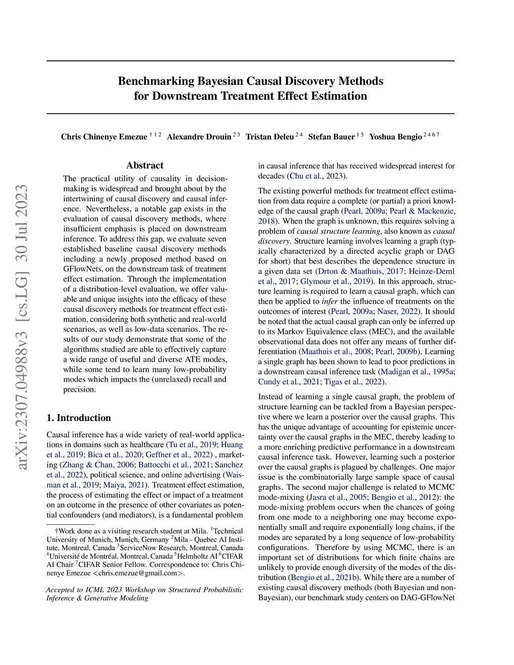 The practical utility of causality in decision-making is widespread and brought about by the intertwining of causal discovery and causal inference. Nevertheless, a notable gap exists in the evaluation of causal discovery methods, where insufficient emphasis is placed on downstream inference. To address this gap, we evaluate seven established baseline causal discovery methods including a newly proposed method based on GFlowNets, on the downstream task of treatment effect estimation. Through the implementation of a distribution-level evaluation, we offer valuable and unique insights into the efficacy of these causal discovery methods for treatment effect estimation, considering both synthetic and real-world scenarios, as well as low-data scenarios. The results of our study demonstrate that some of the algorithms studied are able to effectively capture a wide range of useful and diverse ATE modes, while some tend to learn many low-probability modes which impacts the (unrelaxed) recall and precision.