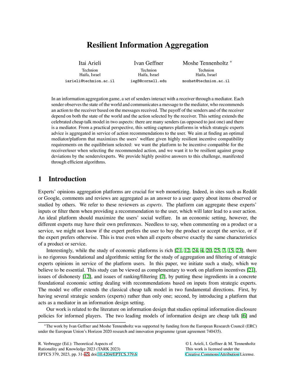 In an information aggregation game, a set of senders interact with a receiver through a mediator. Each sender observes the state of the world and communicates a message to the mediator, who recommends an action to the receiver based on the messages received. The payoff of the senders and of the receiver depend on both the state of the world and the action selected by the receiver. This setting extends the celebrated cheap talk model in two aspects: there are many senders (as opposed to just one) and there is a mediator. From a practical perspective, this setting captures platforms in which strategic experts advice is aggregated in service of action recommendations to the user. We aim at finding an optimal mediator/platform that maximizes the users' welfare given highly resilient incentive compatibility requirements on the equilibrium selected: we want the platform to be incentive compatible for the receiver/user when selecting the recommended action, and we want it to be resilient against group deviations by the senders/experts. We provide highly positive answers to this challenge, manifested through efficient algorithms.