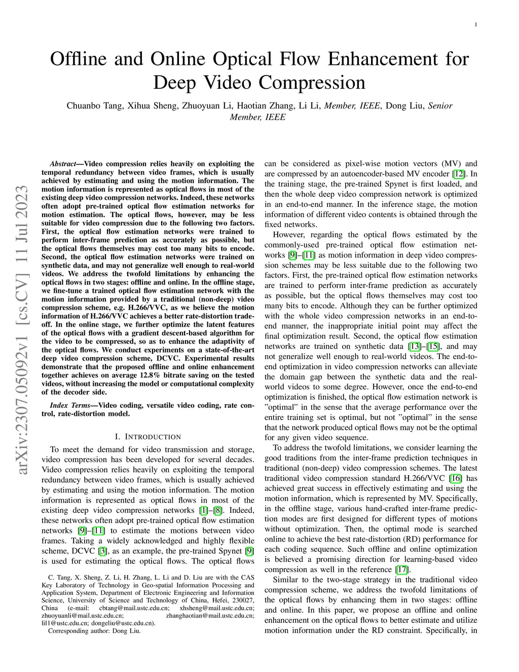 Offline and Online Optical Flow Enhancement for Deep Video Compression